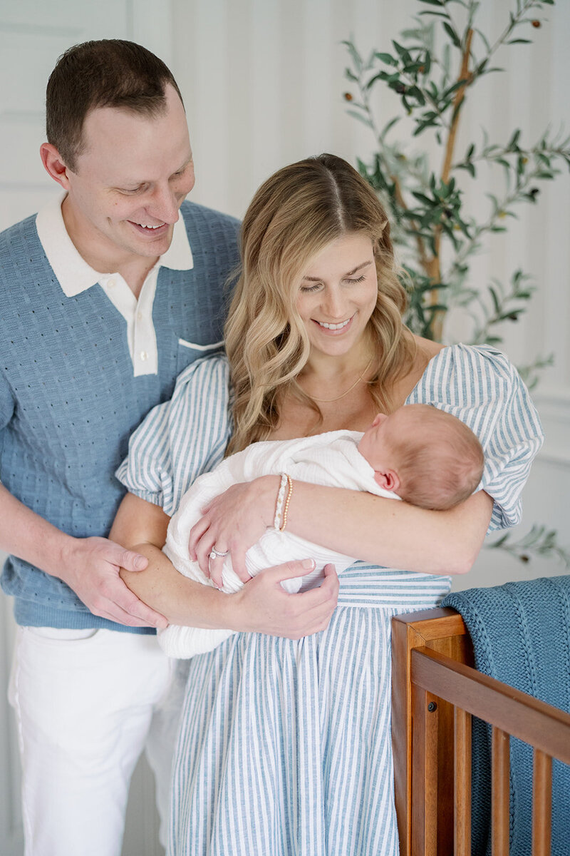 To ensure that your photos are timeless and classic, I encourage a wardrobe of soft pastels or neutral tones with an emphasis on solid colors and keeping any patterns subtle. Having hair and makeup done professionally is also a great option to help you feel your best in front of the camera!